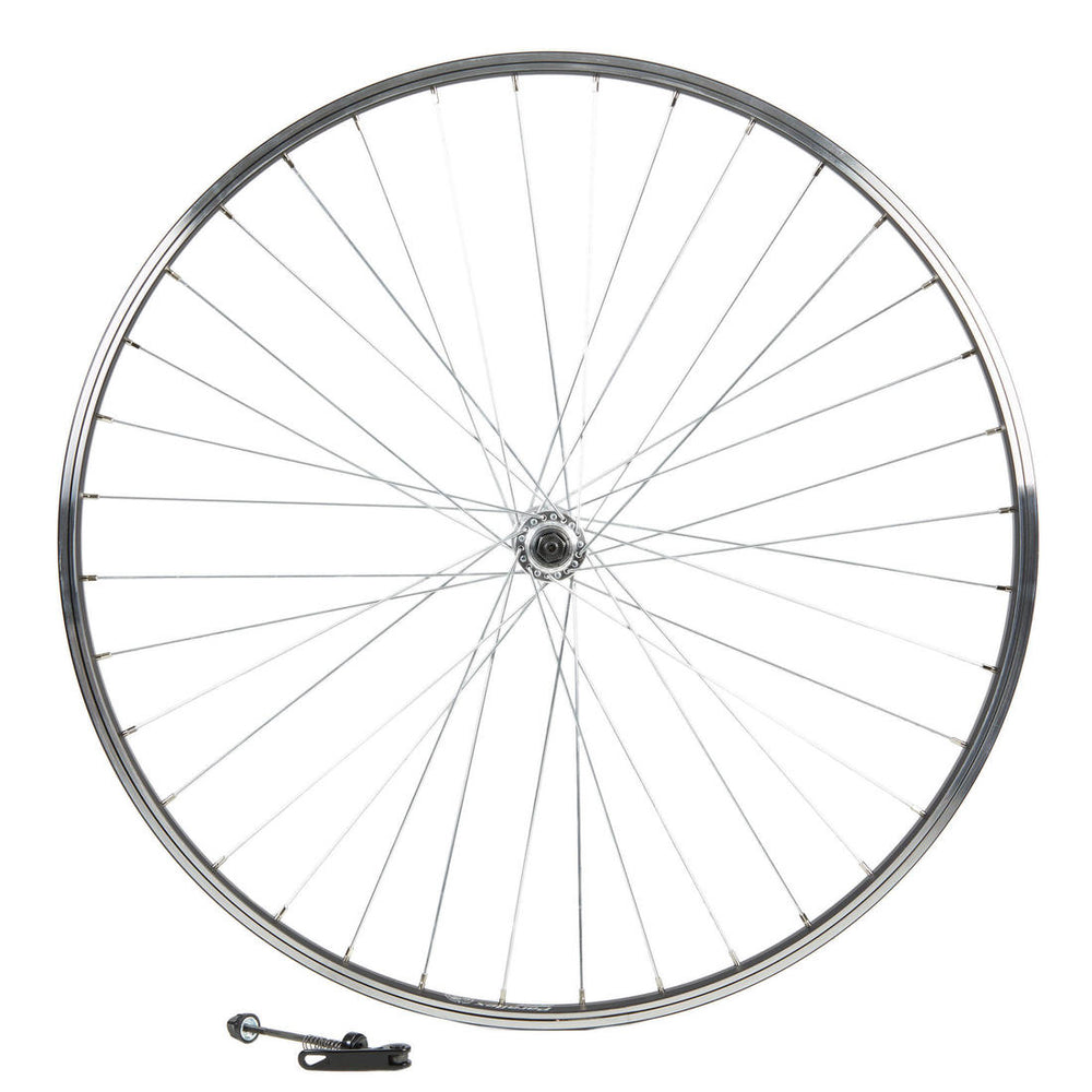 28-inch single-walled black front wheel.