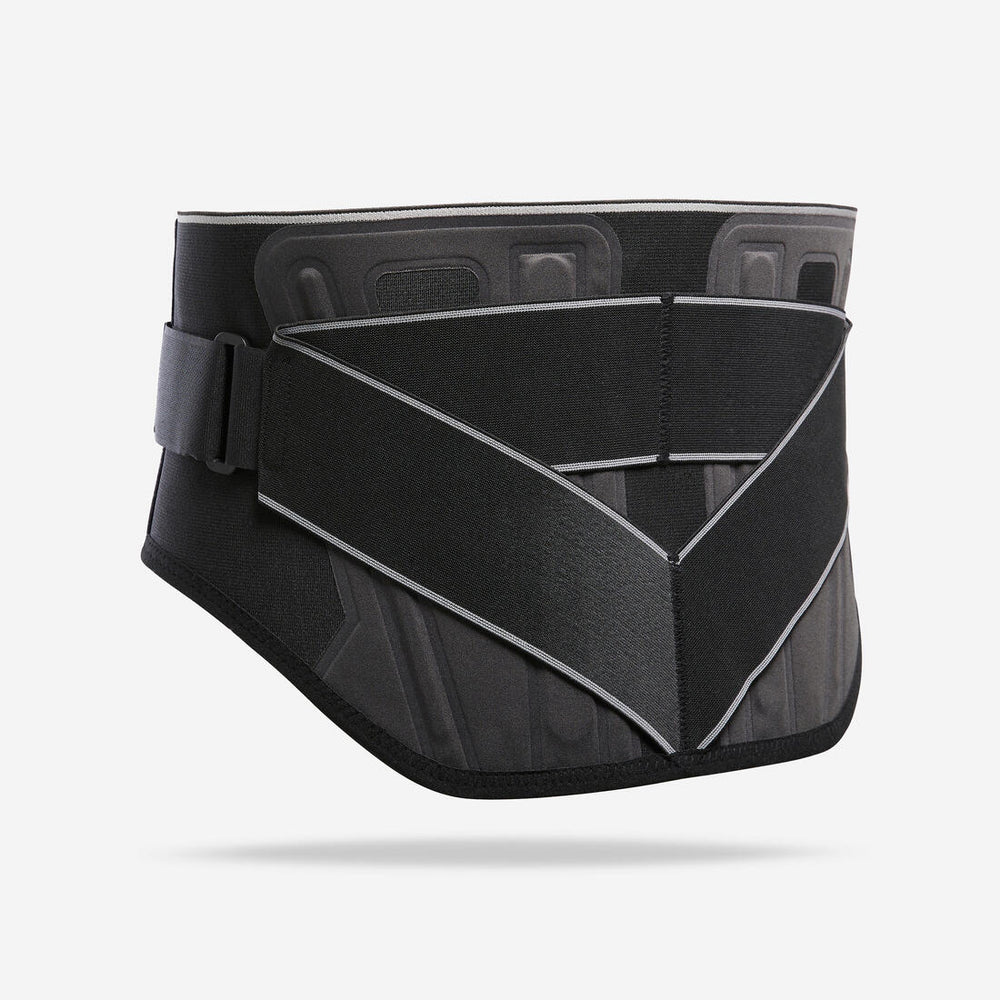 Wear this lumbar belt with soft rear reinforcements and wide straps for level 4 out of 5 strengthened support during exercise.Easy to put on and adjust, its material and shape are adapted to your back's anatomy.Wear it when you need it, even for a gentle activity like walking.It contributes to well-being and balances your back, in addition to strength training exercises.