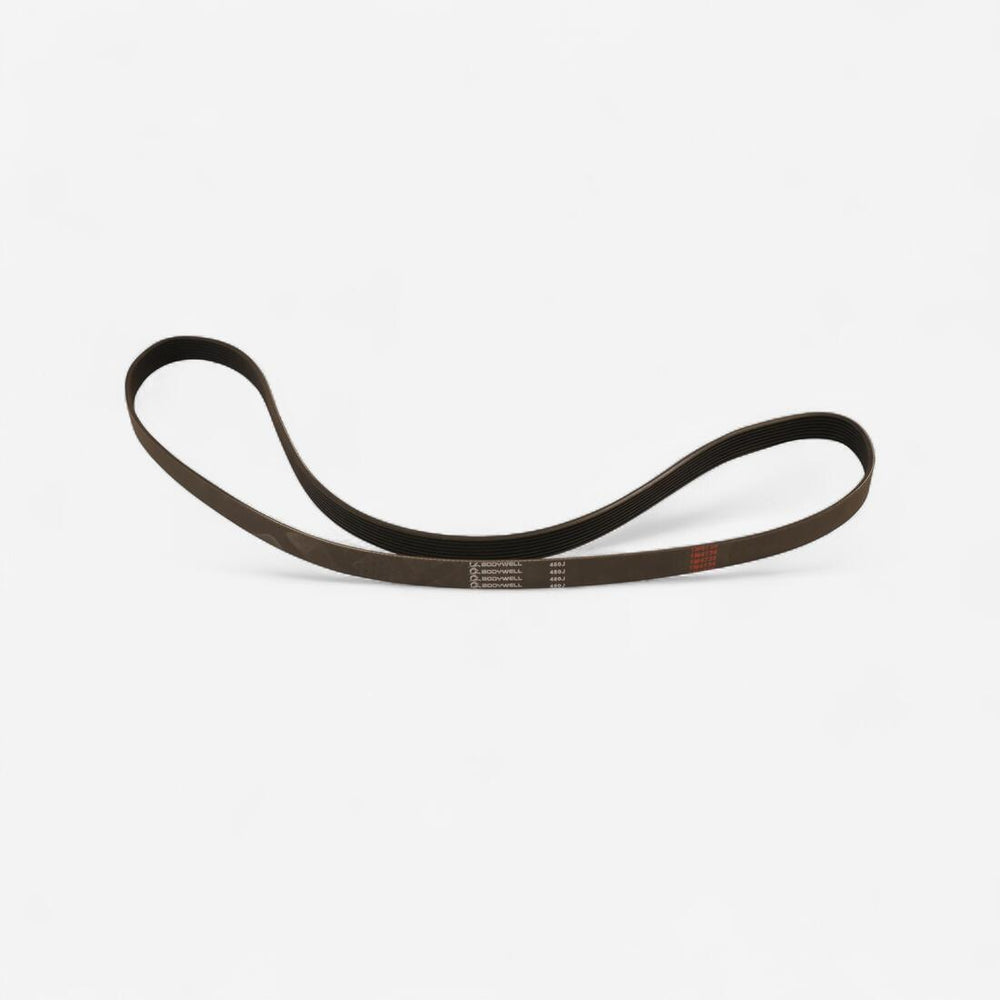 The belt drive transmits the rotational movement of the bottom bracket to the flywheel.
